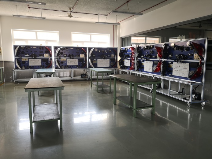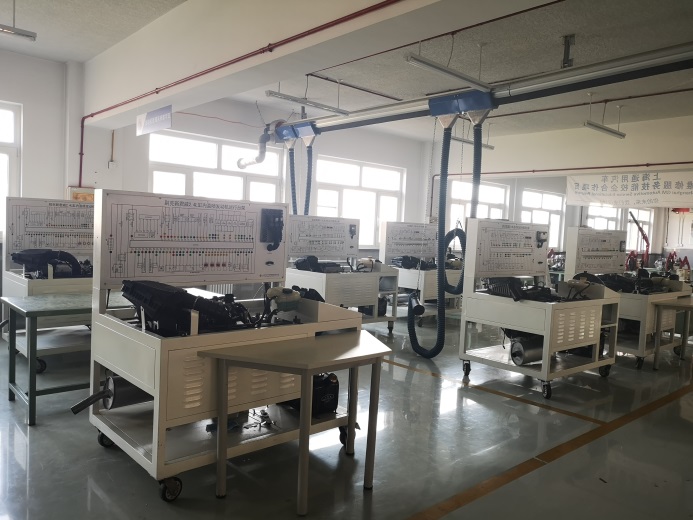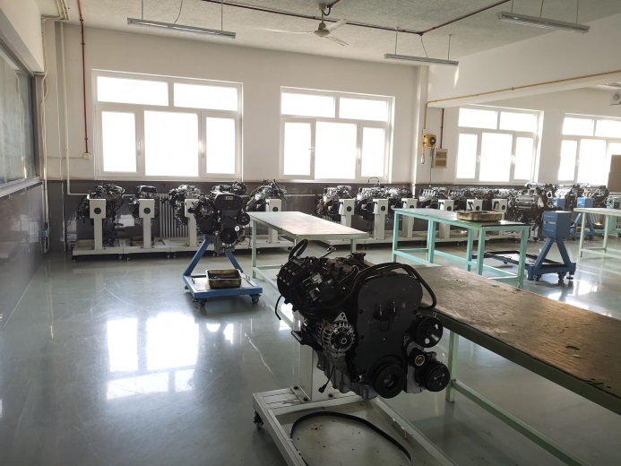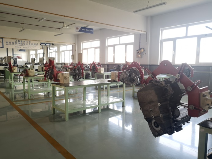 上汽通用ASEP項目理實一體化教學中心面積約1200平方米,設有專用理論教室、工具及資料間、整車實習車間、發動機機械及管理系統實訓室、手動及自動變速器實訓室、電氣及網絡系統實訓室。其中整車有別克君越、君威、凱越、英朗、雪弗蘭科魯茲等5種車型11輛,發動機共9款14臺,手動自動變速器共4種類型14臺,GM全球診斷系統GDS2四臺,發動機運行臺架6臺,通用和專用維修工具配備完善并配有相關車型及設備的廠家維修資料,數字化教學資源較為豐富。