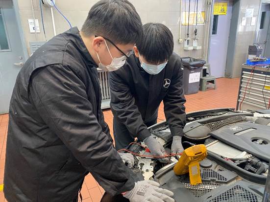 戴姆勒項目的教師來源于我院推薦的現(xiàn)有專業(yè)中英語基礎(chǔ)較好的中青年教師,教師經(jīng)過學(xué)院推薦、戴姆勒中國選拔考試確定。目前售后機(jī)電項目有4名認(rèn)證教師。為強(qiáng)化戴姆勒中國職業(yè)教育項目教師的教學(xué)能力,戴姆勒中國將項目內(nèi)教師送到梅賽德斯·奔馳地區(qū)培訓(xùn)中心、德國培訓(xùn)學(xué)校以及經(jīng)銷商處培訓(xùn),成績合格后承擔(dān)戴姆勒項目的教學(xué)。