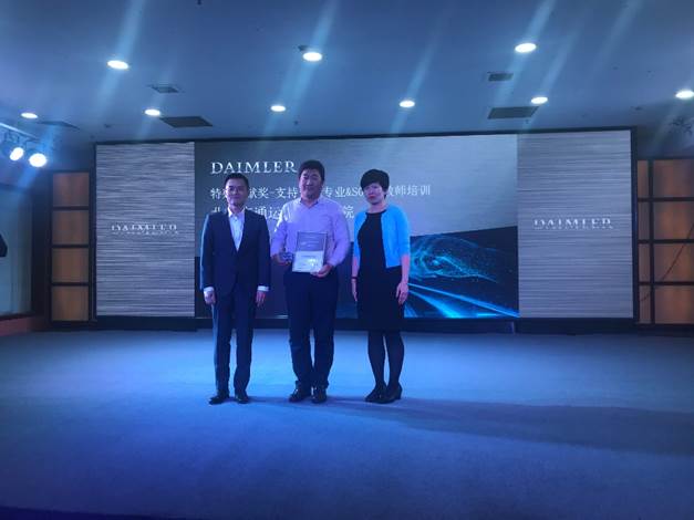 緱慶偉院長代表項目組教師領(lǐng)獎-戴姆勒項目特殊貢獻(xiàn)獎