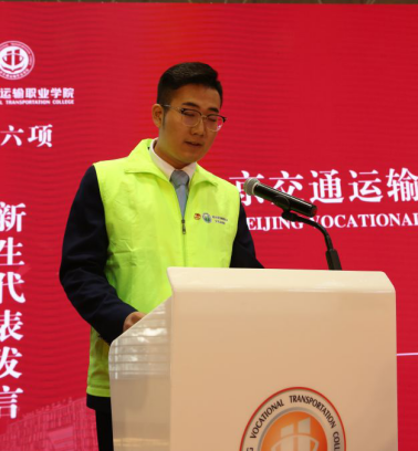 通過高考自主招生考試來到我院的2019級城市軌道交通車輛技術專業的黎明同學作為新生代表發言。他講述了自己在假期期間加入學院學生融媒體中心并參與交通宣傳工作的經歷,這些實踐經歷使他感受到交通行業的變化和祖國的強大,使他萌生了成為職業人、交通人的理想。他號召全體新生,在北交院,在我們追逐夢想的新起點,展望新學期,不僅要學好理論知識、提升實踐能力、苦練技術技能,還要將職業素養深入內心,秉持高尚的品格、勇敢的擔當、大愛的情懷,向著準職業人的方向努力。
