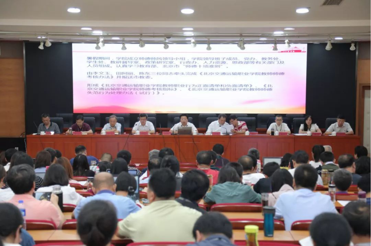 8月30日上午,北京交通運輸職業(yè)學(xué)院召開新學(xué)期學(xué)院教職工大會,總結(jié)暑期黨政工作情況,部署學(xué)院下半年工作。學(xué)院領(lǐng)導(dǎo)班子成員、全體黨員、全體教師、綜管系統(tǒng)全體人員、后勤系統(tǒng)班組長等近300人參加會議。黨委副書記、副院長田維民主持會議。