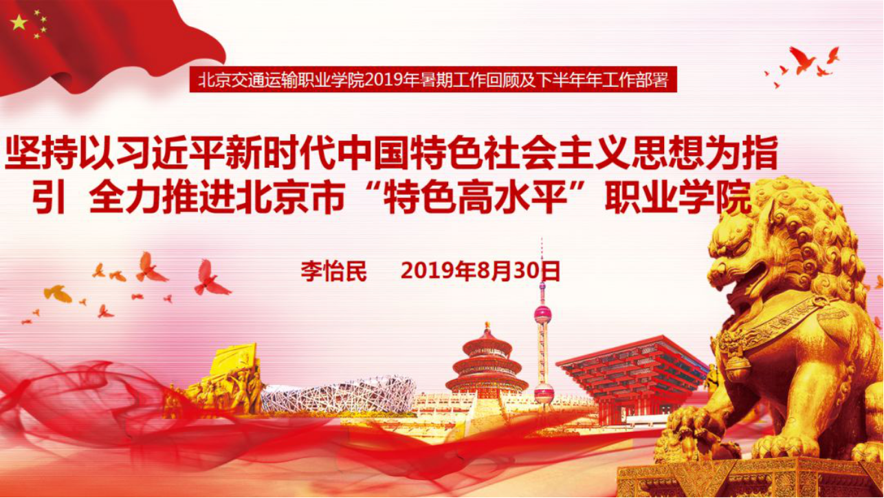 李怡民同志指出:2019年是中華人民共和國成立70周年,是決勝全面建成小康社會、實現(xiàn)第一個百年奮斗目標的關(guān)鍵之年,是深入貫徹落實全國教育大會精神的開局之年,也是學(xué)院攻堅克難、狠抓落實,全力加強學(xué)院黨的政治建設(shè),全力推進北京市“特色高水平”職業(yè)學(xué)院建設(shè)的重要一年。在市交通委黨組的堅強領(lǐng)導(dǎo)下,學(xué)院黨委堅持以習(xí)近平新時代中國特色社會主義思想為指引,認真學(xué)習(xí)貫徹黨的十九大精神,深入開展“不忘初心、牢記使命”主題教育,切實增強“四個意識”,堅定“四個自信”,推進“兩個堅決維護”,堅持執(zhí)行黨委領(lǐng)導(dǎo)下的校長負責(zé)制,全面深入落實全面從嚴治黨主體責(zé)任。圍繞一個主題、一條主線、十五項攻堅任務(wù)促進學(xué)院“十三五”規(guī)劃確定的目標和北京市“特色高水平”職業(yè)學(xué)院建設(shè)重點任務(wù)落實。