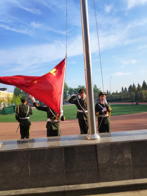 操場上空,五星紅旗迎風飄揚。那抹鮮艷的紅色映襯著藍天的景象,早已銘刻在每個北交院人心中。對祖國的熱愛,對美好生活的向往,隨著這片“中國紅”永駐心間。