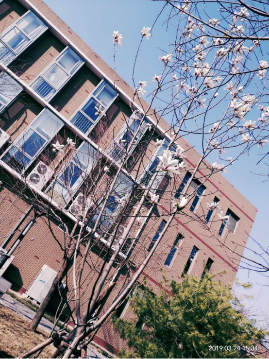 教學樓前面的小樹開了不少鮮艷的花,像一個個害羞的玉女,散發出一陣陣淡淡的清香,