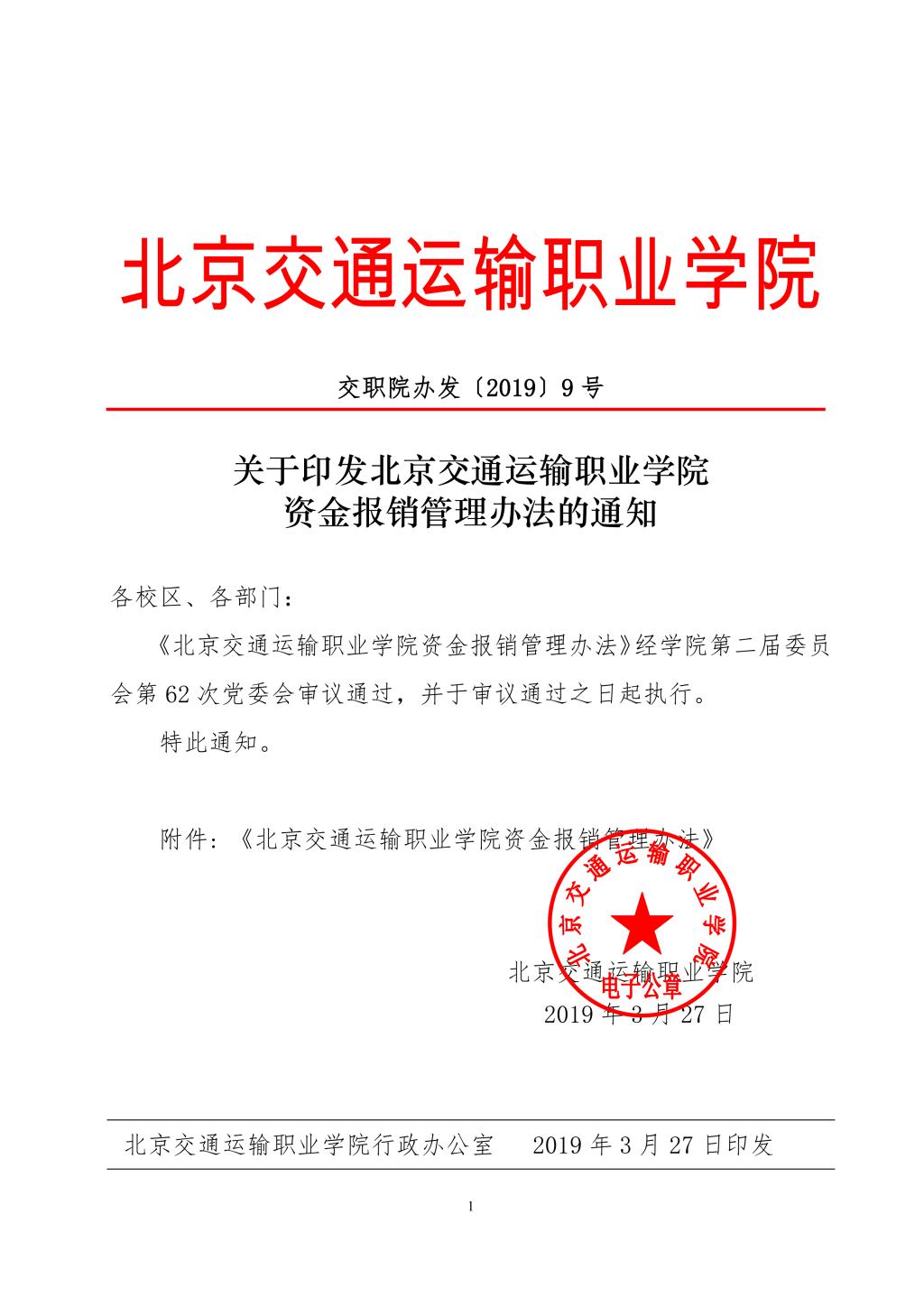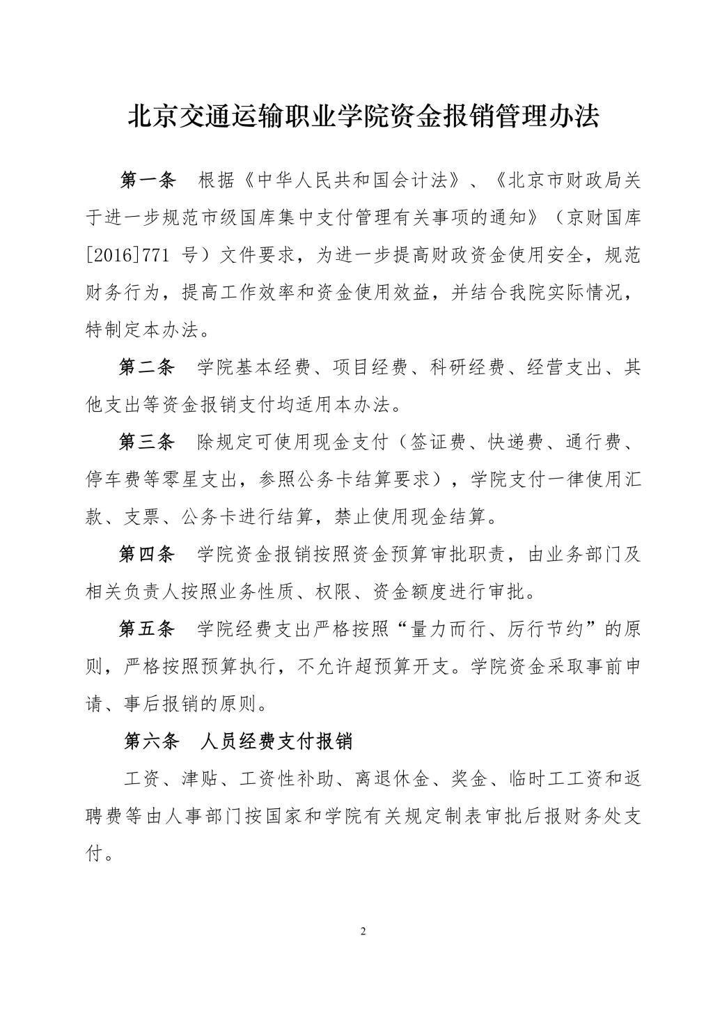 關于印發北京交通運輸職業學院 資金報銷管理辦法的通知