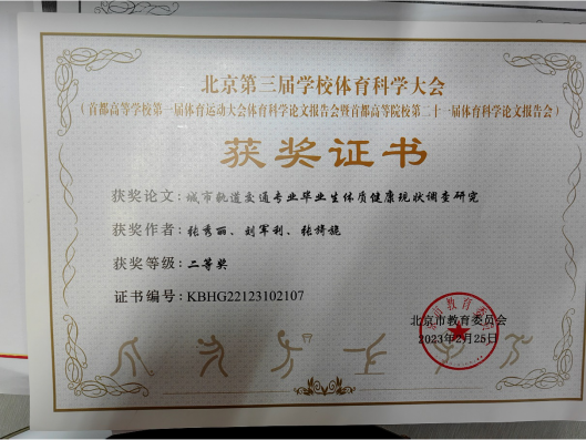 張秀麗老師的論文《城市軌道交通專業畢業生體質健康現狀調查研究》獲得二等獎