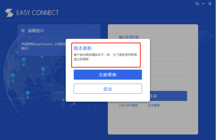 然后點擊立即更新,即可出現登錄界面。如下圖: