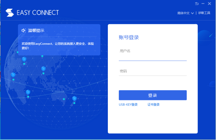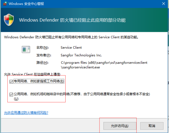 如上圖,在用戶名和密碼框中填入對應的“用戶名”和“密碼”。然后選擇登錄,登錄過程中若出現殺毒軟件或防火墻攔截提示,請選擇“允許訪問”。如下圖: