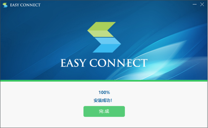 安裝成功后,點擊“完成”按鈕。至此,電腦已完成客戶端的安裝操作。如果沒有自動彈出登錄界面,那么電腦上的桌面應該會有一個VPN客戶端的快捷圖標。如右圖