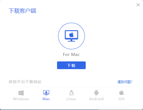 如上圖所示,客戶端也會根據電腦的操作系統進行默認匹配要下載的版本。在彈出的“下載客戶端”對話框中的底部,我們也可以選擇其他平臺要下載的版本,例如蘋果系統MAC、Linux、Android以及IOS,選擇好以后,點擊下載按鈕,彈出如下圖提示: