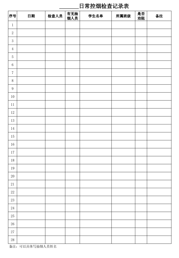 日常控煙檢查記錄表
