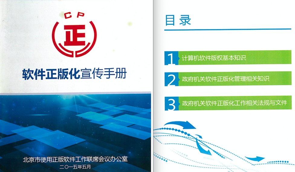 來源聲明:以下宣傳資料來自北京市使用正版軟件工作聯席會議辦公室于2015年5月發布的軟件正版化宣傳手冊。
