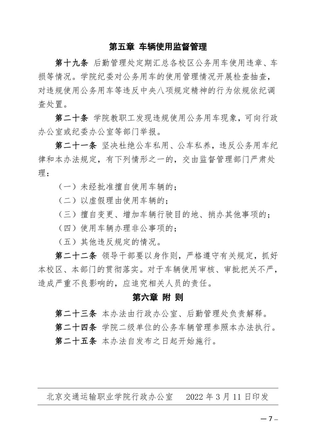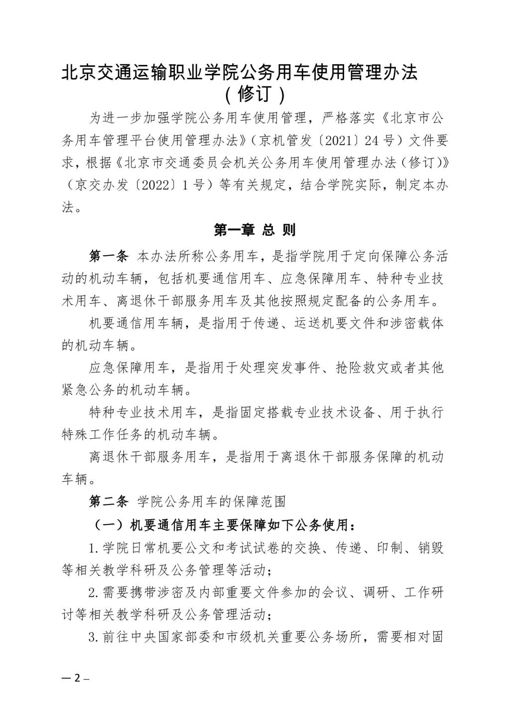 關于印發《北京交通運輸職業學院公務用車使用管理辦法》(修訂)的通知