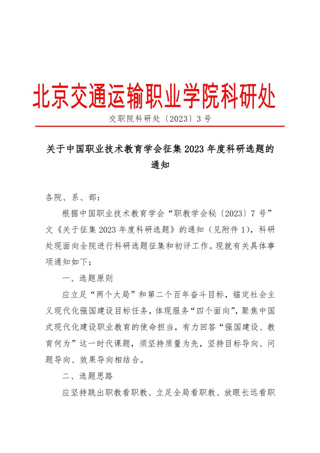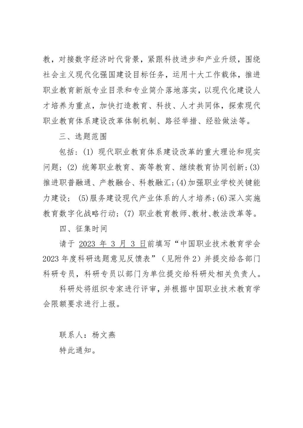 關于中國職業技術教育學會征集2023年度科研選題的通知