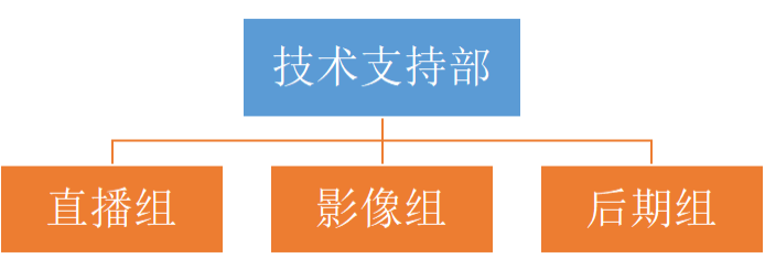 技術支持部分為三個小組:分別是直播組,影像組和后期制作組。