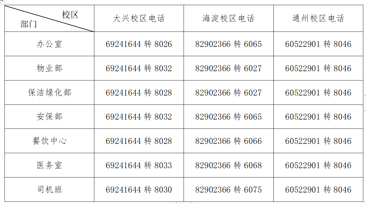 大興校區:北京市大興區濱河街18號院(郵編:102618)海淀校區:北京市海淀區四撥子北路16號院(郵編:100096)通州校區:通州梨園鎮云景東路90號沙子口東校區:豐臺區定安西里12號樓沙子口西校區:豐臺區東木樨園21號樓車站路校區:通州區車站路71號院北新橋校區:東城區北新橋三條36號學院辦公室電話:010-69243164 學院總機:010-69241644 招生就業咨詢:010-69204968