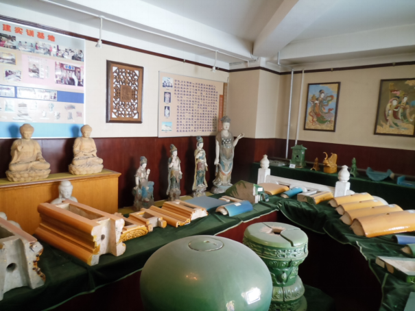 實(shí)訓(xùn)基地使用面積500平米,分為古建模型室、民居室內(nèi)裝飾陳設(shè)室、瓦石雕塑室、操作機(jī)械與工具室、木作室、彩畫室、古建研討室八個(gè)部分。其中,古建模型室是傳統(tǒng)建筑、建筑藝術(shù)模型實(shí)物展廳,收集制作了傳統(tǒng)建筑單體建筑模型、結(jié)構(gòu)模型、組合體模型、構(gòu)配件模型。其木作室的各類斗拱按比例可以拆卸、組裝,供學(xué)生學(xué)習(xí)和動(dòng)手操作。模型室的木雕、磚雕、石雕和其他各類展品,如:歇山、廡殿、懸山、硬山、攢尖頂?shù)慕ㄖd、臺(tái)、樓、閣和珍貴的建筑造型組成了典型有序的古建世界。民居陳設(shè)室為學(xué)生提供了觀察、學(xué)習(xí)、測繪的條件、不但使學(xué)生開闊了眼界也提供了典型的職業(yè)環(huán)境。古建操作機(jī)械室、油漆彩畫室配備了各類機(jī)械、工具、材料,學(xué)生可以進(jìn)行木作雕刻、油漆彩畫制作。